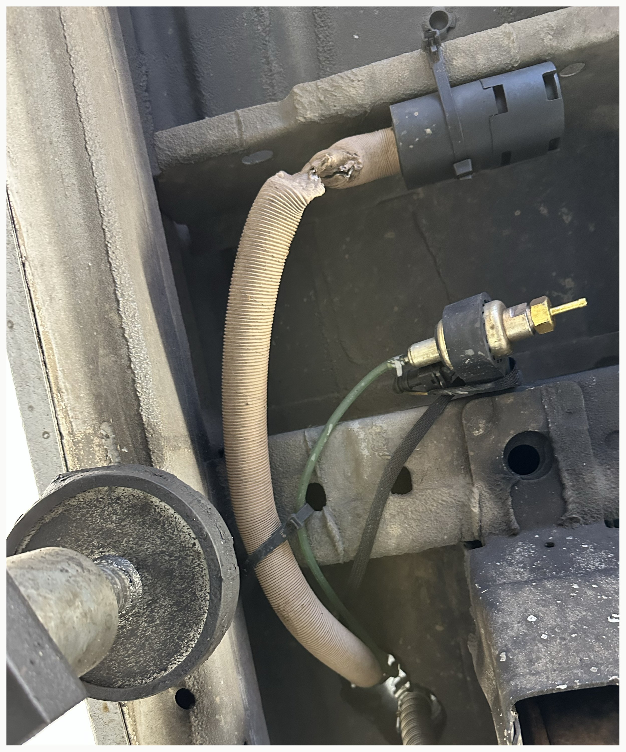 Credit to the guy however, on top of the damaged fuel pipe he also repaired the air intake pipe which was also torn and the panel which someone had knocked in whilst reversing into the van and who promptly left the scene, nice! He did those two jobs for free.