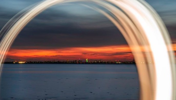 I was confronted by a stunning sight as I looked across the water from Hayling Island towards Portsmouth and the Spinnaker Tower.
