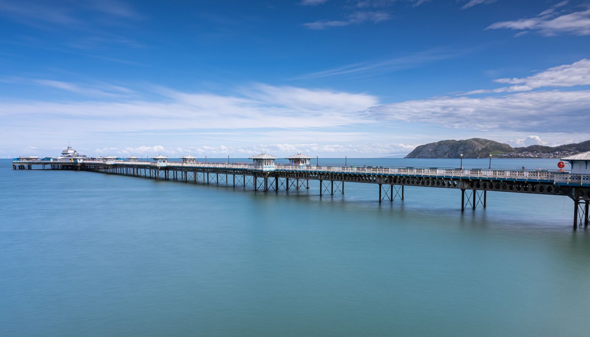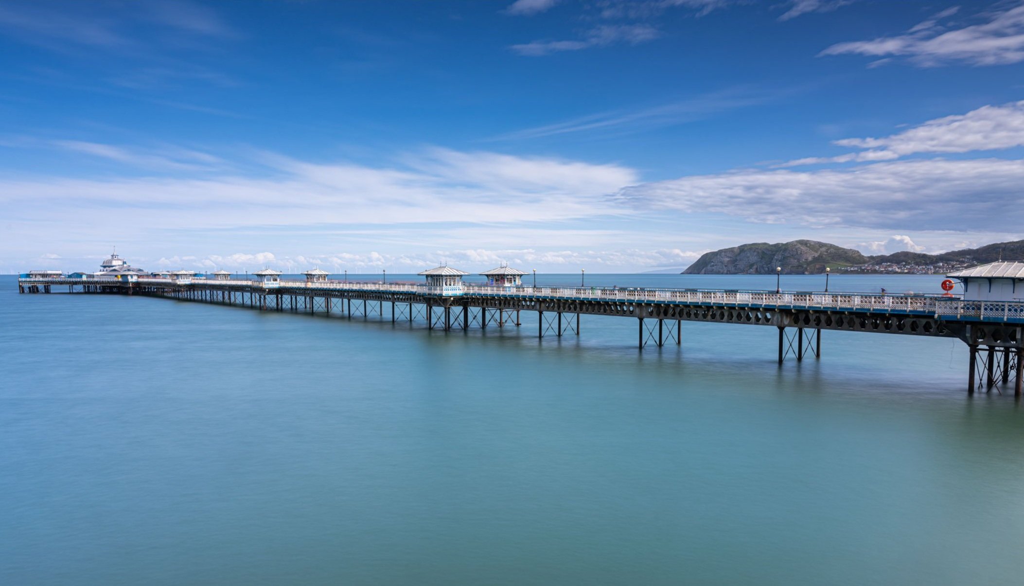 Llandudno Pier is a Grade II* listed pier in the seaside resort of Llandudno, North Wales, United Kingdom. At 2,295 feet, the pier is the longest in Wales and the fifth longest in England and Wales. In 2005, was voted “Pier of the Year 2005” by the members of the National Piers Society.